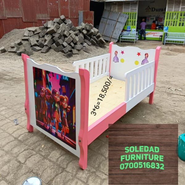 3×6 Kids Wooden Bed with Side Rails Cartoon-Themed